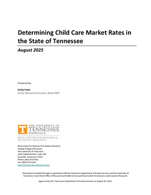 This report compiles information collected by the Boyd Center for Business and Economic Research at the University of Tennessee and the Tennessee Department of Human Services to determine the most appropriate Tennessee-specific structure for estimating child care market rates.