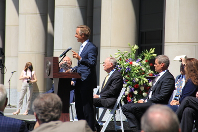 Photograph of Governor Haslam giving a speech at the grand opening of the new Library & Archives building