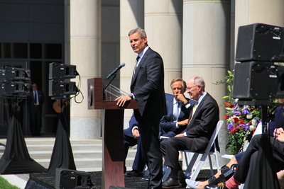 Photograph of Governor Lee giving a speech at the grand opening of the new Library & Archives building