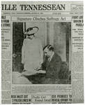 Governor A.H. Roberts signing papers in the presence of Miss Charl Williams of Memphis, a leading suffragist, that certify Tennessee's passing of the 19th Amendment. Williams was the Vice Chairman of the Democratic Executive Committee.