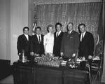 Elvis Presley visiting the Tennessee State Capitol, posing with Governor Buford Ellington and staff. Governor Buford Ellington's daughter, Ann (later Ann Ellington Wagner), stands beside of Elvis.