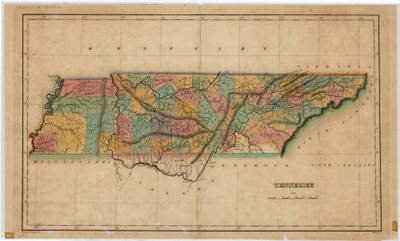 Map of Tennessee soon after the cession by treaty of Chickasaw lands between the Tennessee and Mississippi Rivers. The map shows newly formed West Tennessee counties in different colors and short-lived configuration s that would change as new counties were formed. It also shows county seats, rivers and mountains. Recently formed (by the New Madrid earthquakes of 1812-13) Reelfoot Lake appears as "Wood Lake."