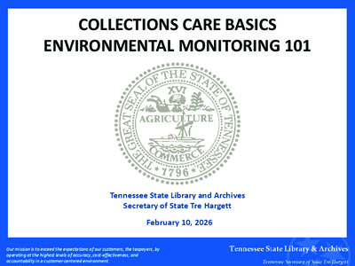 This webinar focuses on effective response and recovery strategies tailored to Tennessee-based institutions. Learn about key resources, tools, and actions to take after an emergency or disaster occurs to protect your collections and ensure long-term resilience.